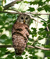 Many people have been captivated by owls in Dyke Marsh this spring. Several people have confirmed a barred owl (Strix varia) pair raising two young and a great horned owl pair (Bubo virginianus) with one young. It’s parenting at its best.